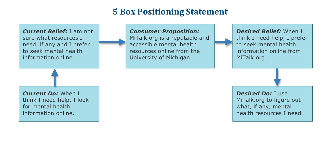 Characteristic of a behavioral objective is a call to action. I really like the idea of using a call to action in the communication objective of MiTalk.org. I have been playing with the idea of using the tag line "Let's Talk, MiTalk.org" as a sort of call to action with the brand name repetition added in for awareness. One thing I am worried about in using this line is that it may mislead people into thinking there is some sort of live chat component to the website. I think this isn't necessarily a problem if the rest of the message makes it clear what the website is for. I think that this tag line could continue to be capitalized on even later when they have moved on to other stages of promotion. Messages that include this call to action might be informational like the ones above, or include a normalizing message with the behavior suggestion "67% of UM Students sometimes feel isolated and alone, MiTalk.org is a UofM resource for mentel wellness with tools to help you feel more connected and at ease. Let's talk, MiTalk.org." or something like that. I really like the idea of including these real statistics from CAPS in the message to help normalize mental health needs. I think these messages might reduce resistance to accessing mental health resources.